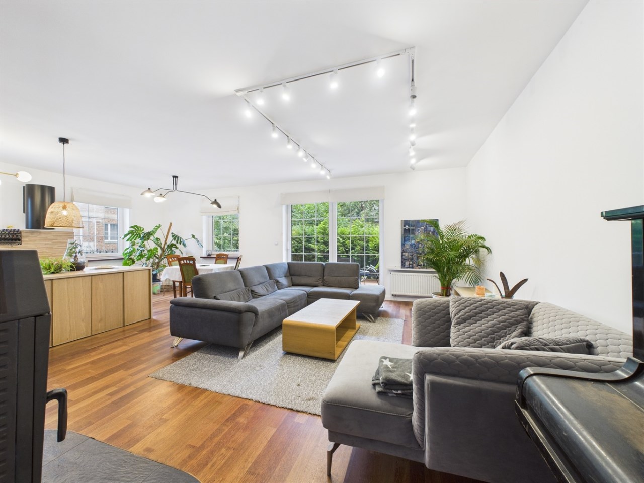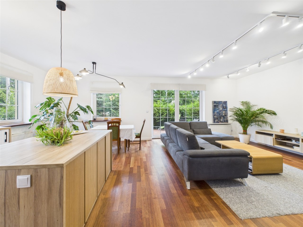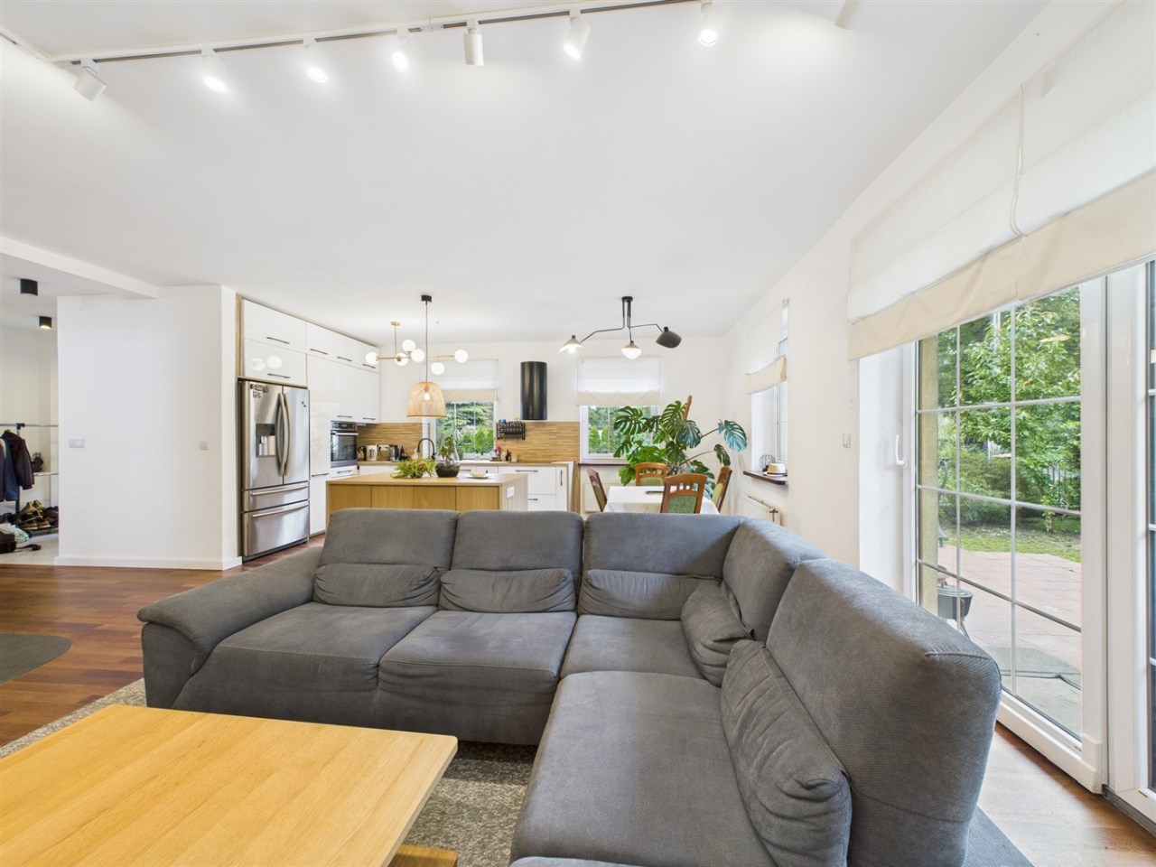 przestronny i jasny salon z jadalnią oraz wyjściem na taras,