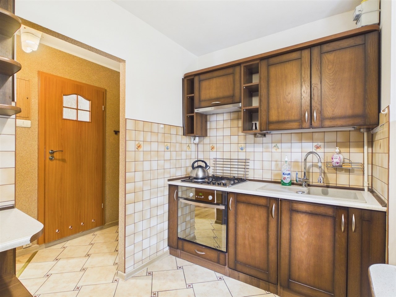 Mieszkanie znajduje się na zamykanym korytarzu, współdzielonym tylko z trzema sąsiadami, co zapewnia ciszę i prywatność. Lokal stanowi odrębną własność, bez obciążeń. Wyposażony w drzwi antywłamaniowe, okna PCV, kuchnię w zabudowie meblowej. Mieszkanie zadbane, gotowe do zamieszkania.