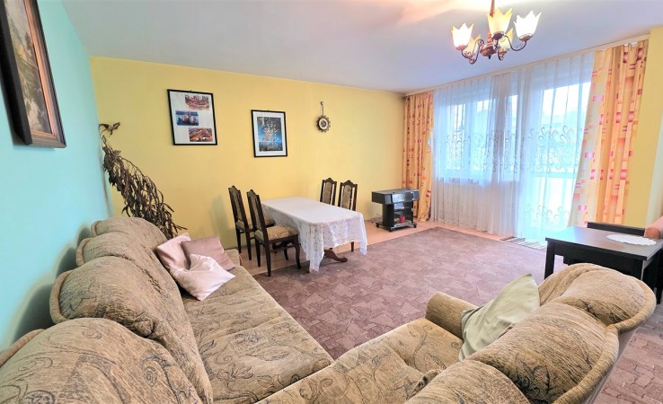 Przestronny salon z wyjściem na balkon,