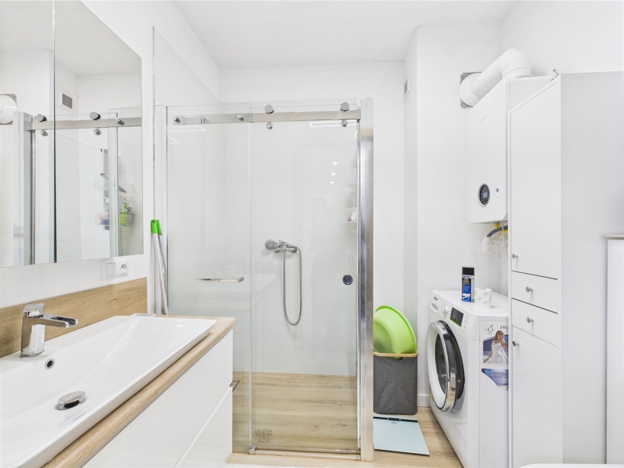 Układ pomieszczeń: Obecnie apartament składa się z przestronnego salonu z jadalnią i otwartą kuchnią, dużej sypialni oraz powiększonej łazienki. Istnieje możliwość wydzielenia drugiej, niezależnej sypialni poprzez postawienie ścianki działowej (w miejscu jadalni)